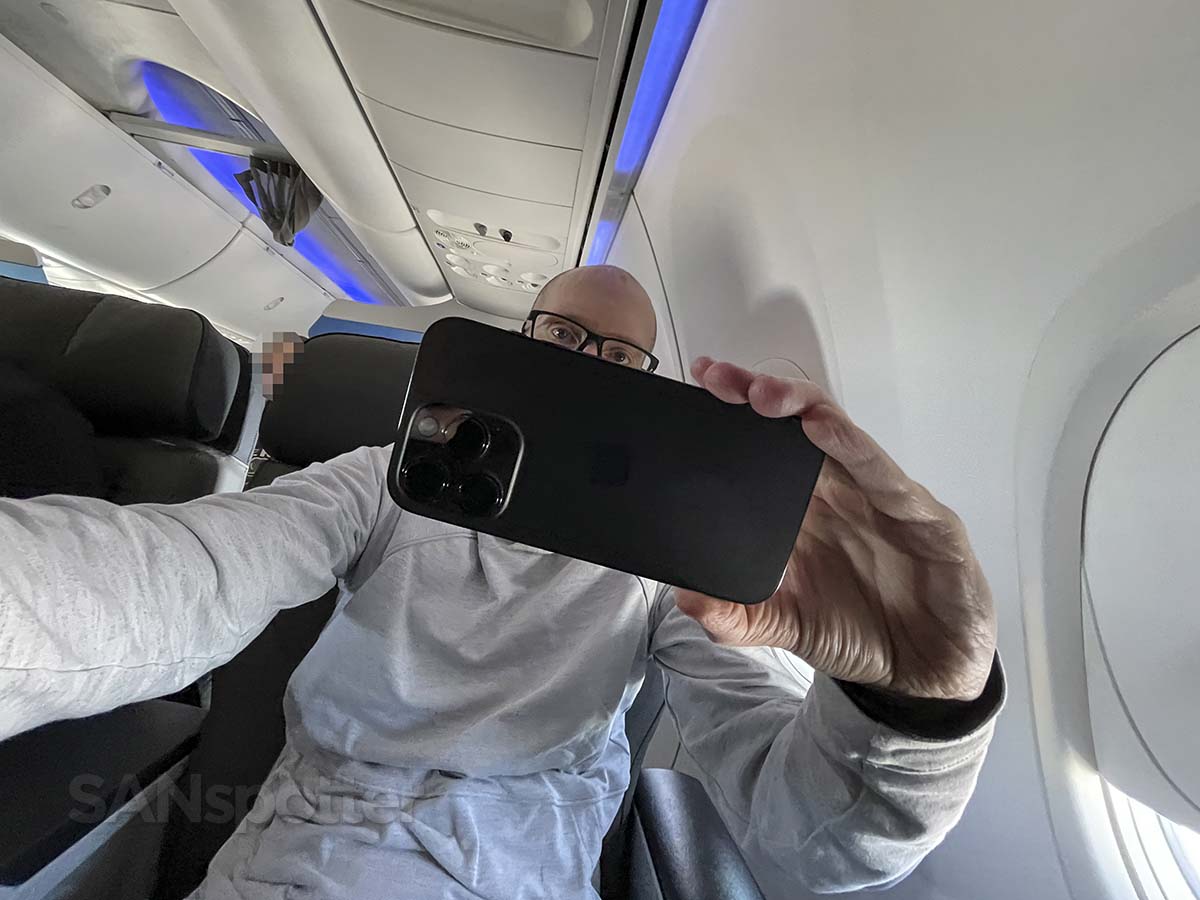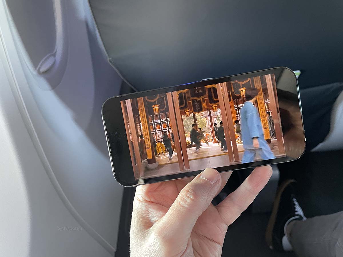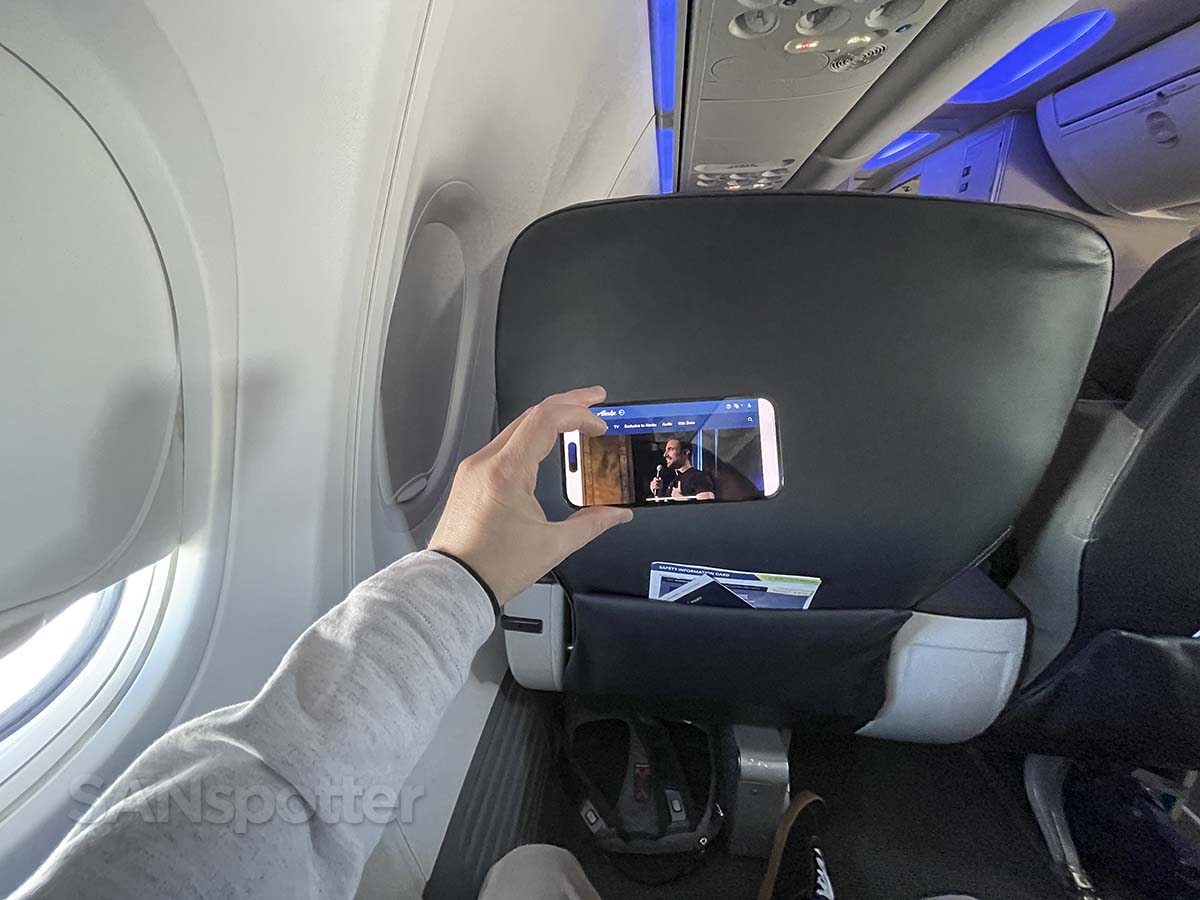 Perhaps my biggest gripe about the in flight entertainment here in first class on the 737-900ER is the fact that there are no device holders built into the seat. You’re gonna have to get creative to prevent your arms (and neck) from getting sore by the time you arrive at your destination.