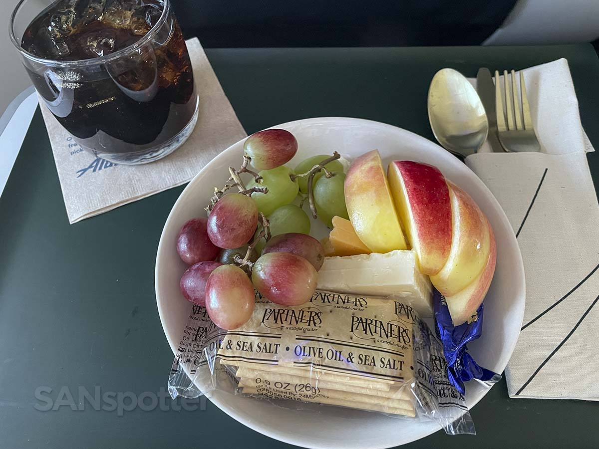 I was given the opportunity to pre-select a meal approximately one week prior to departure. I always choose the fruit and cheese plate when flying Alaska Airlines, but all of the other options on the menu looked tempting as well.