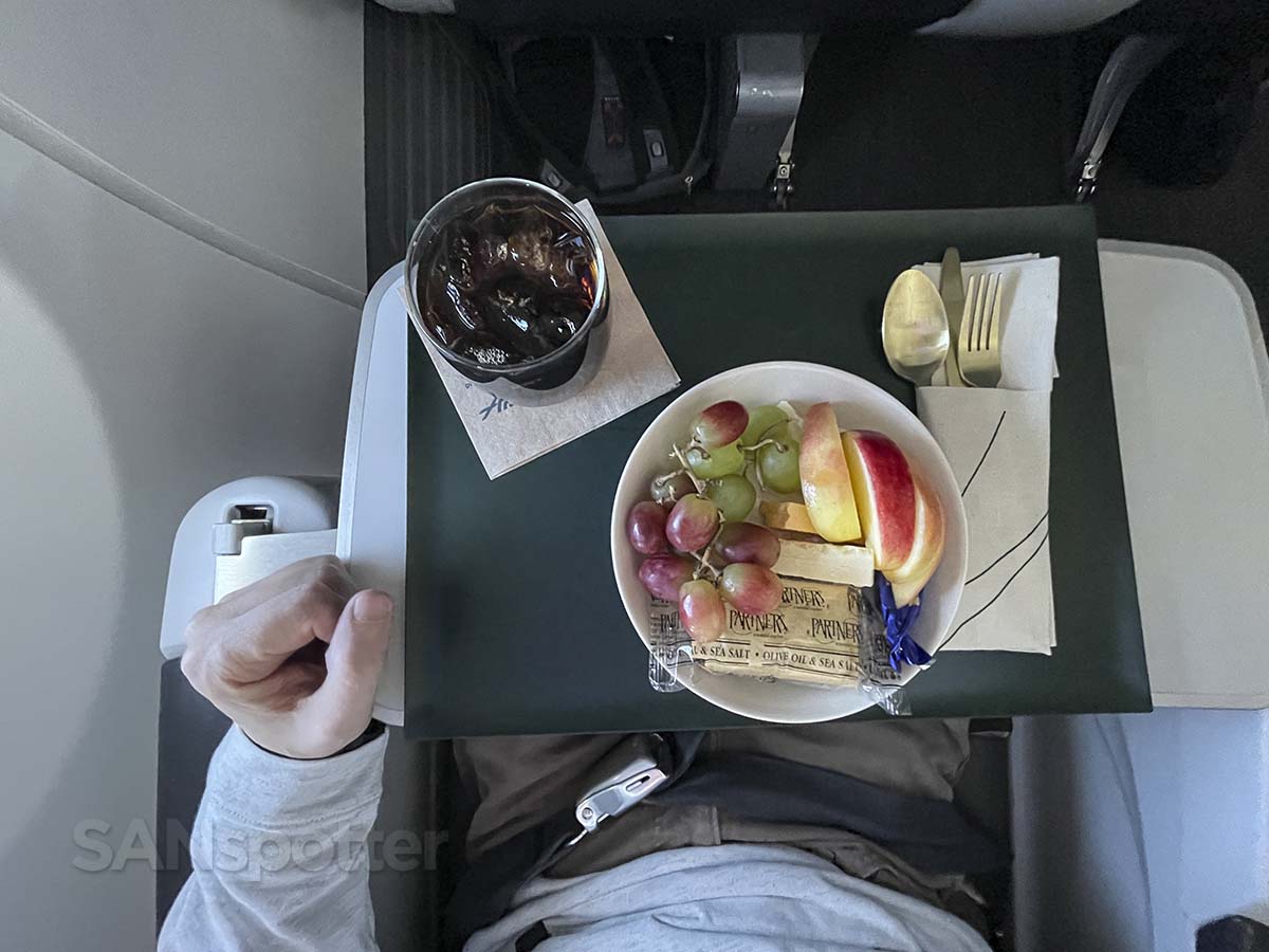 I do not like the fact that they keep removing cheese wedges from what was once the best fruit and cheese plate in the sky. Oh how the mighty have fallen.