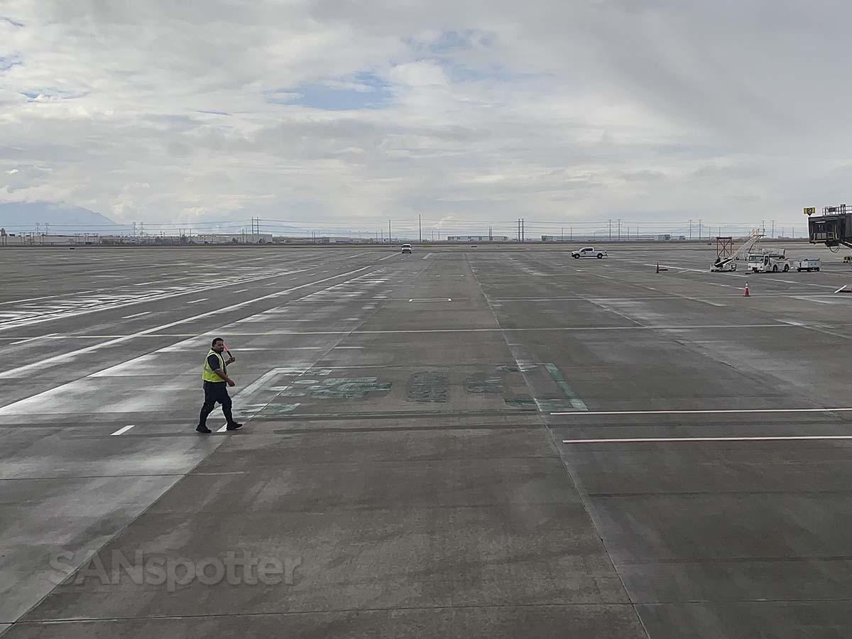 The reason for a last-minute swap to the 737-900ER was lost on me upon realization that this was going to be a very light load down to SLC this morning. With maybe 100 passengers waiting in the gate area, assigning a high-capacity long range aircraft to this mission seemed a bit overkill.