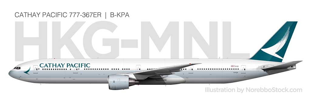 Cathay Pacific 777-300ER side view illustration by NorebboStock.comOur route from Hong Kong to Manila this evening as CX903.
