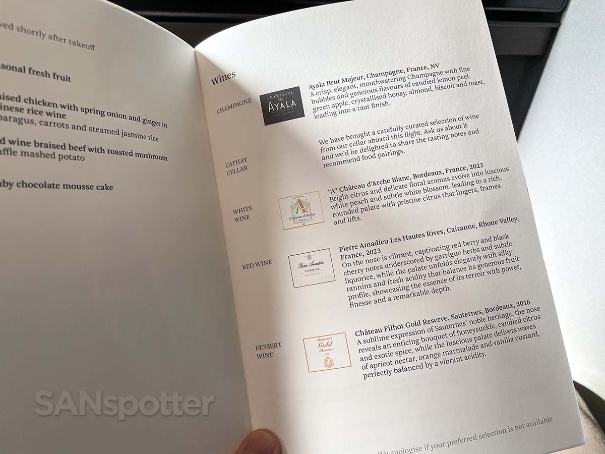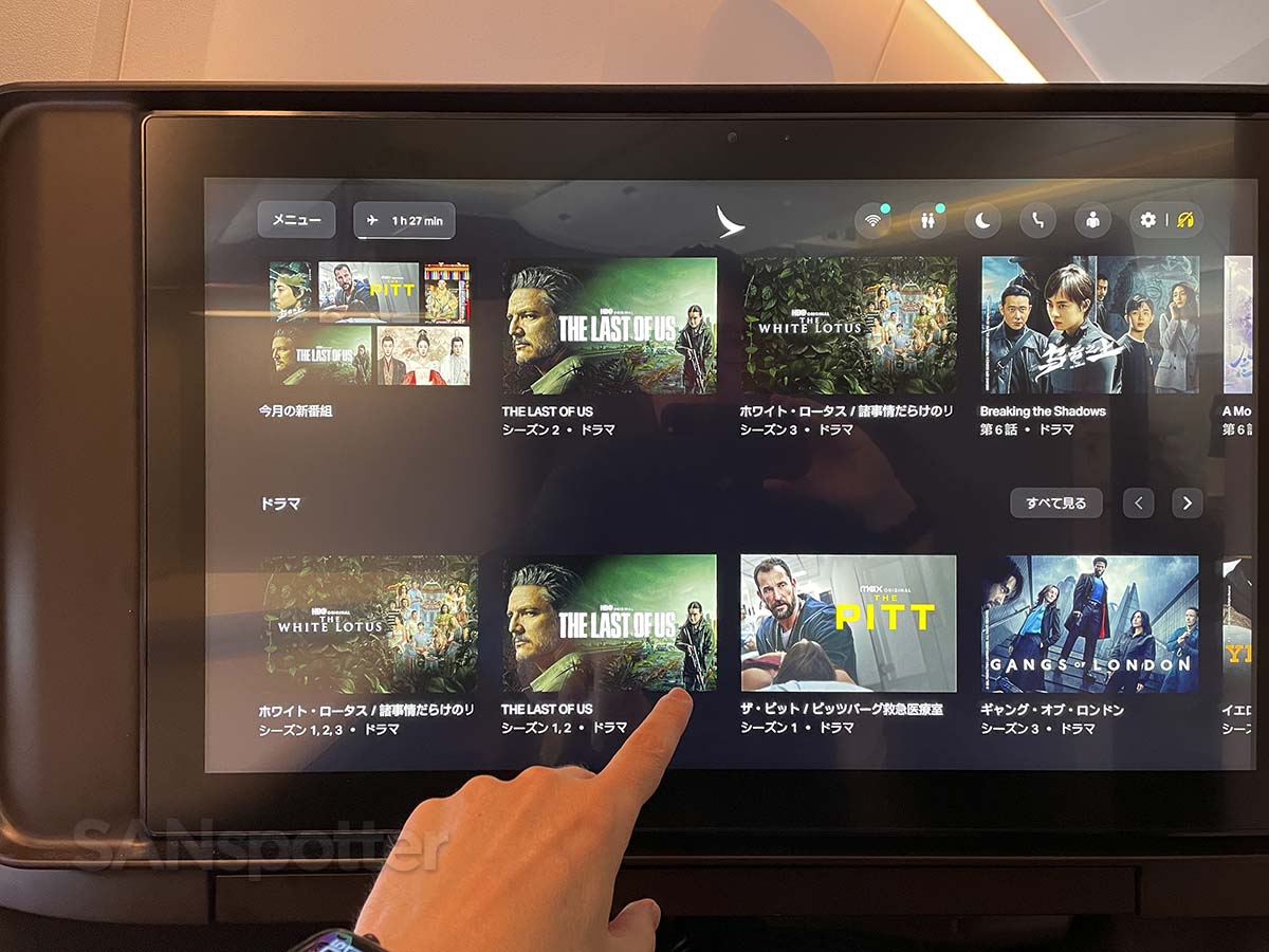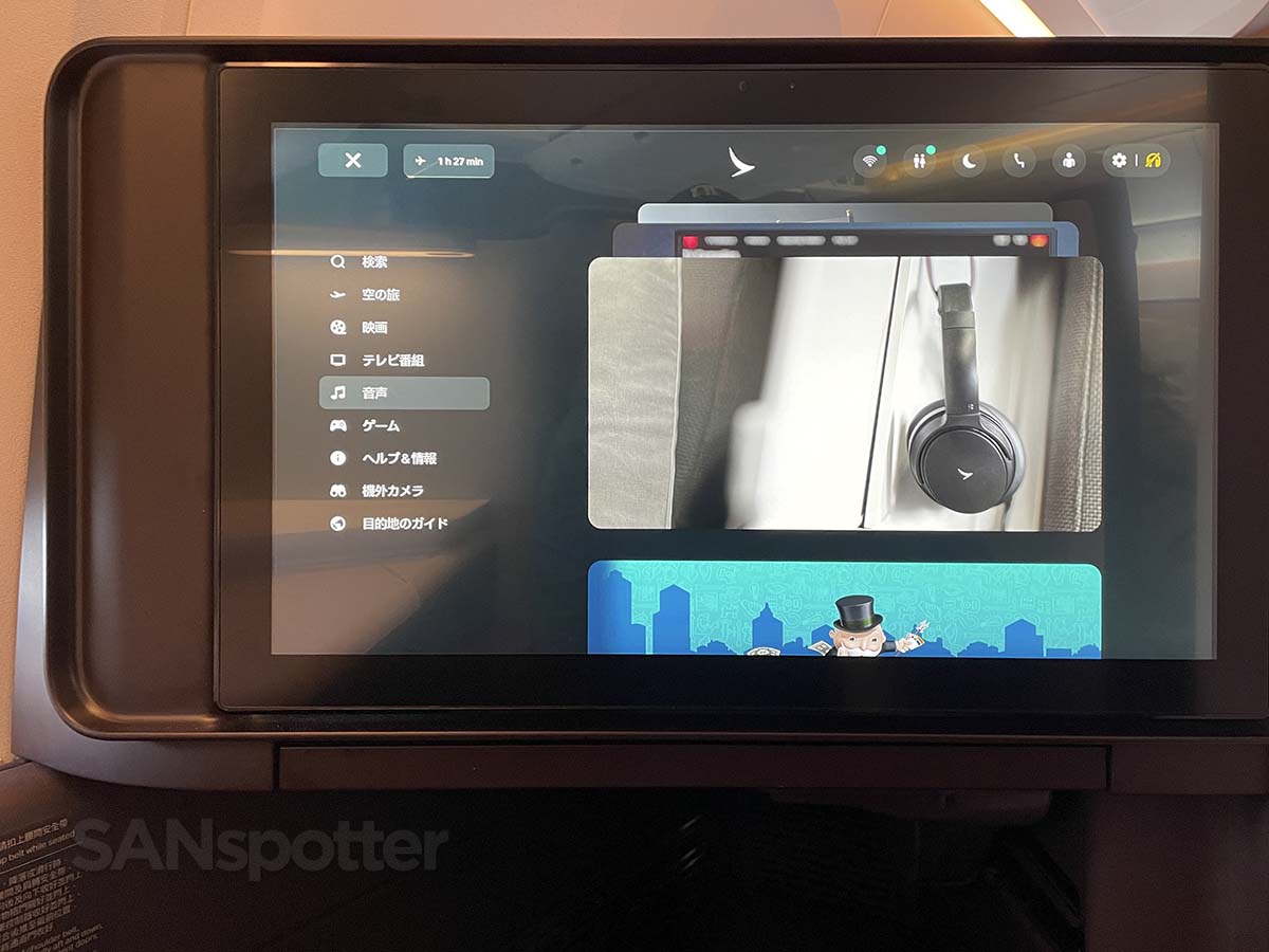 This aircraft featured the latest version of Studio CX, which is Cathay Pacific’s legendary in-flight entertainment system. Combined with that huge (but ultra reflective) video screen, it reminded me a lot of the amazing (but equally reflective) in-flight entertainment experience in Starlux A350-900 business class.
