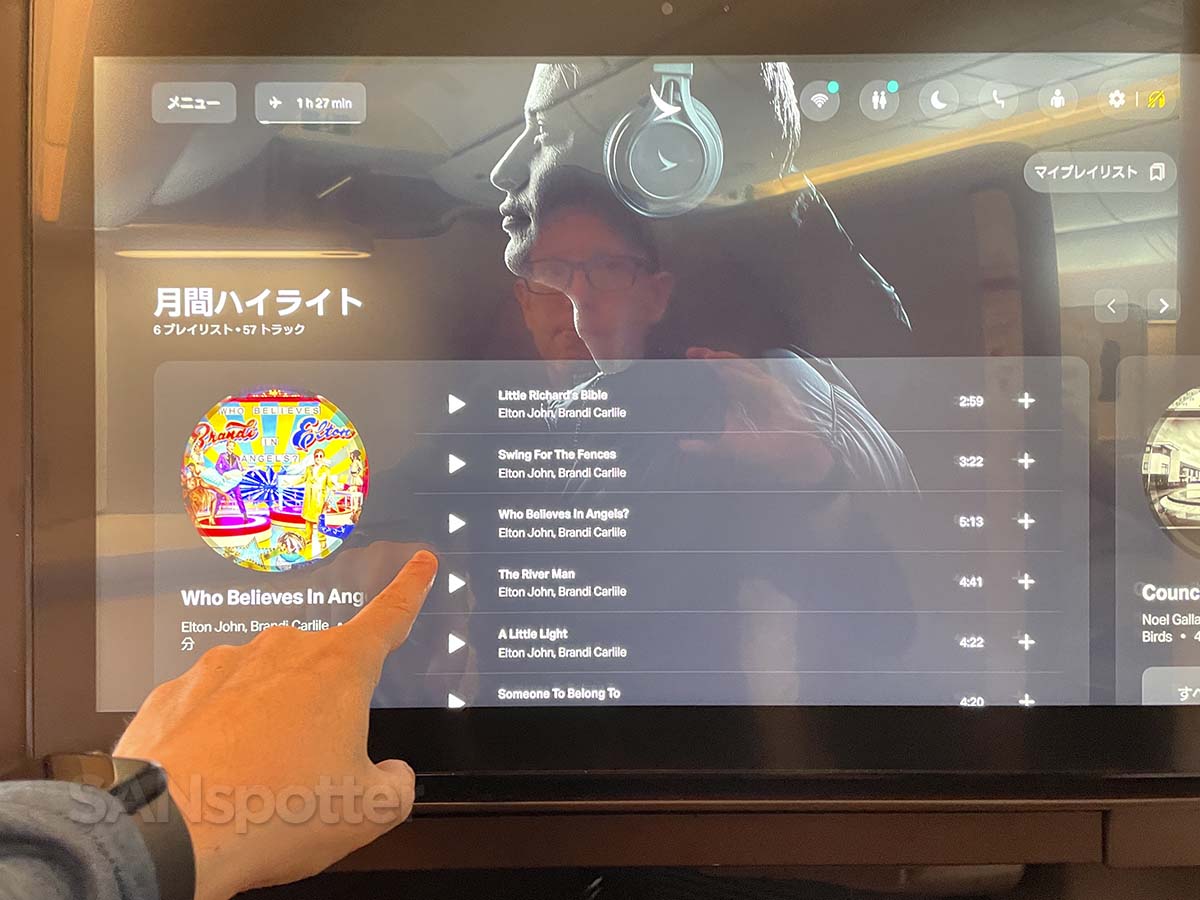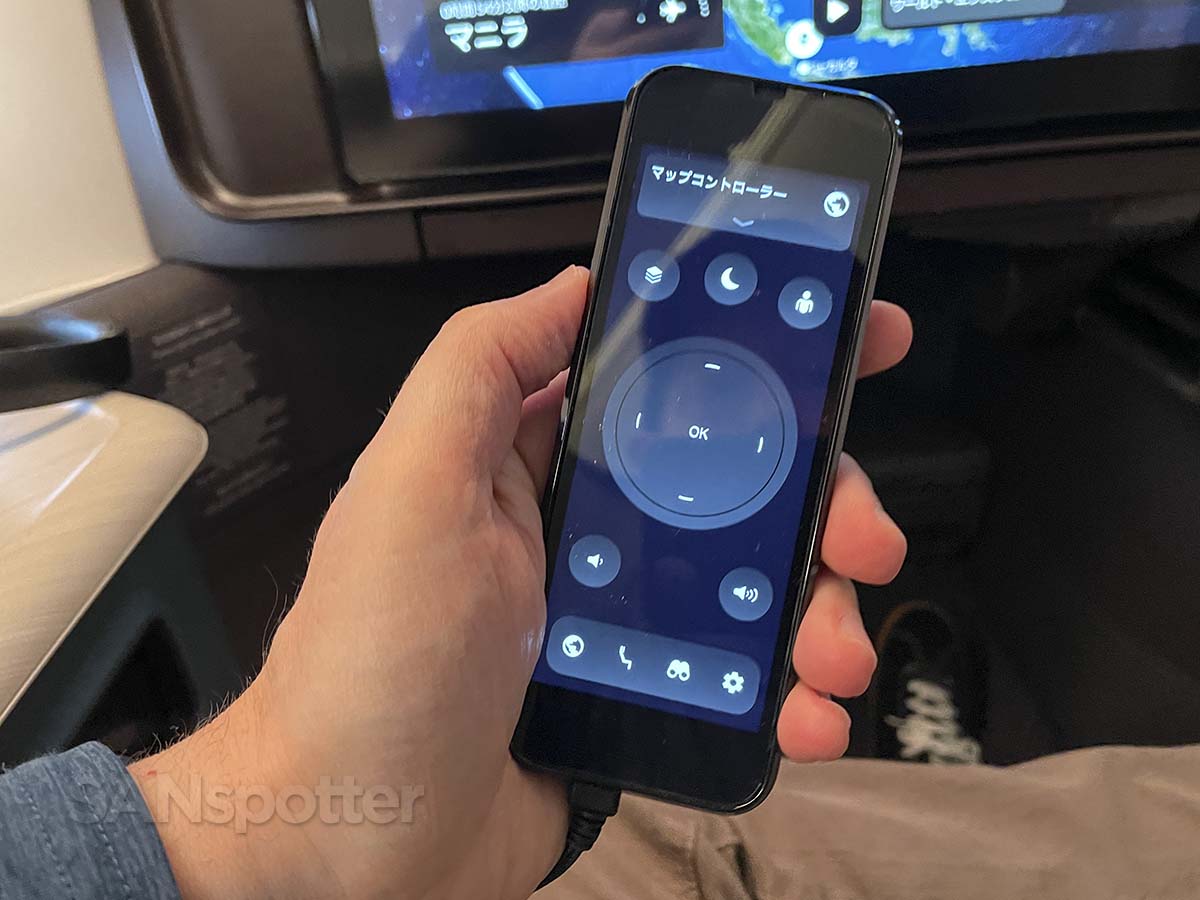 Surely the technology exists for a covering that can be placed over a high-gloss display which reduces glare? On this flight, that technology just might be the pad of butter that will be served with my bread roll in about 15 minutes. Sometimes you gotta do what you gotta do.I like how they think that I (a guy who decided to write about airplanes for a living) would be tempted to strap on a pair of headphones with noise cancellation strong enough to drown out the sound the mighty GE90 right outside my window. I may be a hard-core AvGeek with a thing for the sound of GE90’s, but gosh darn it if the catalog of music in Studio CX isn’t so flippin’ awesome. They got me.Thank goodness for the universal language of icons, ’cause I’m still stuck in Japanese mode even here on the remote control.