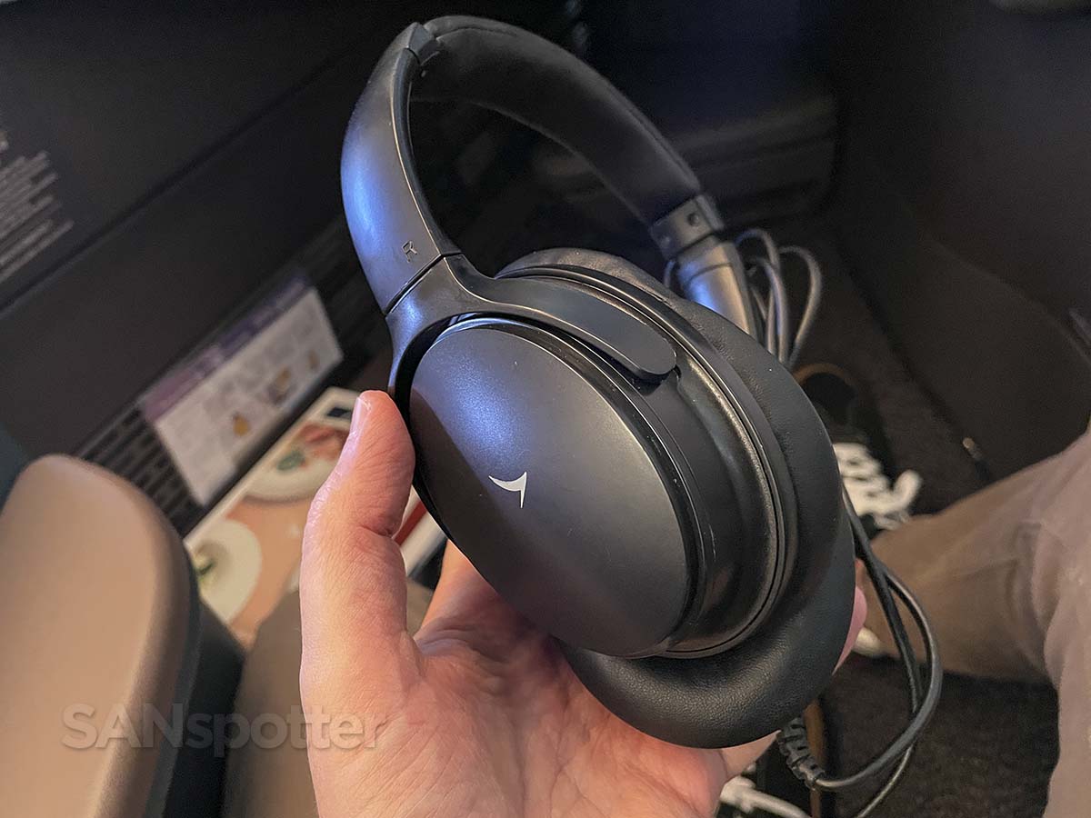 Despite the lack of amenity kits (which were not provided because of how short the flight was going to be), noise canceling headphones, a large pillow, and menus for drinks and food were at the seat upon arrival.