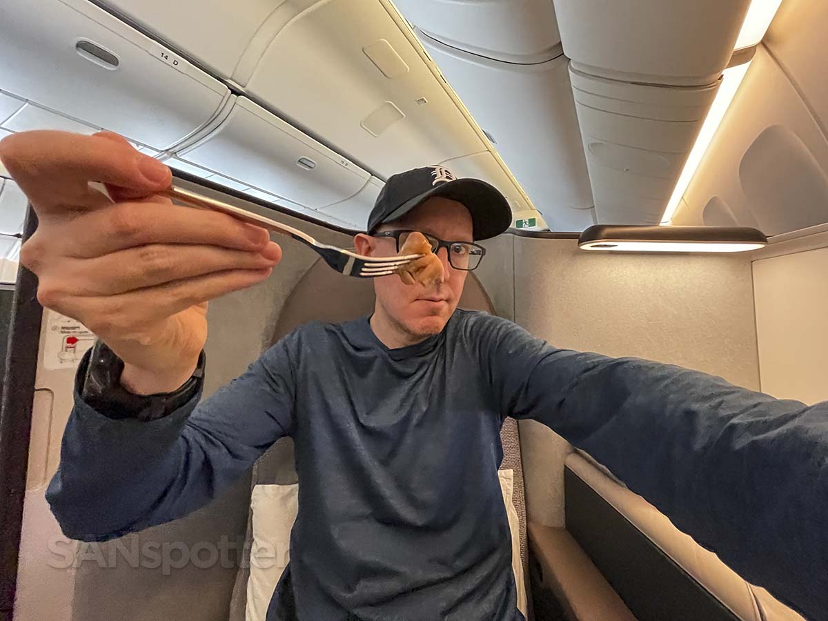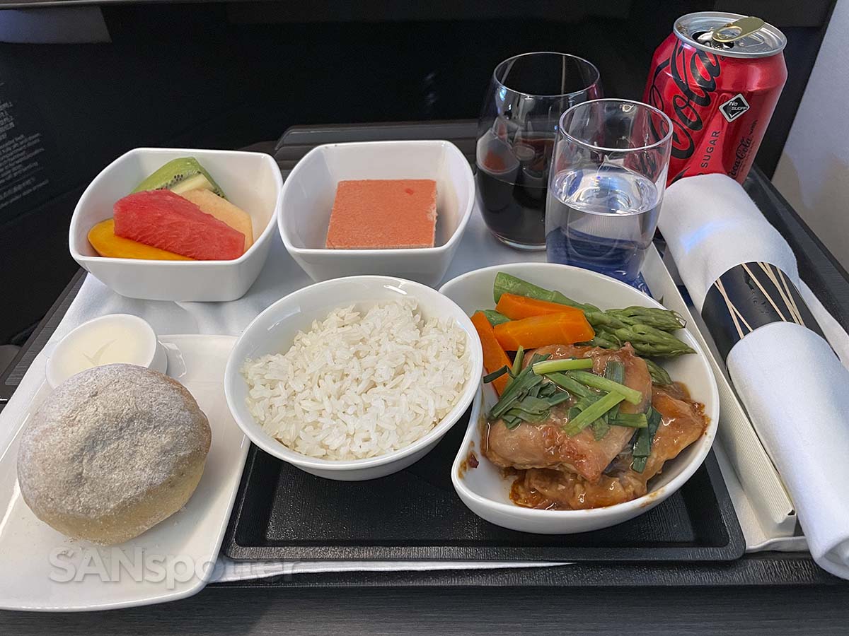 There were two main course options offered on this flight (beef or chicken). Both sounded good, but come on. I’m a chicken man through and through.