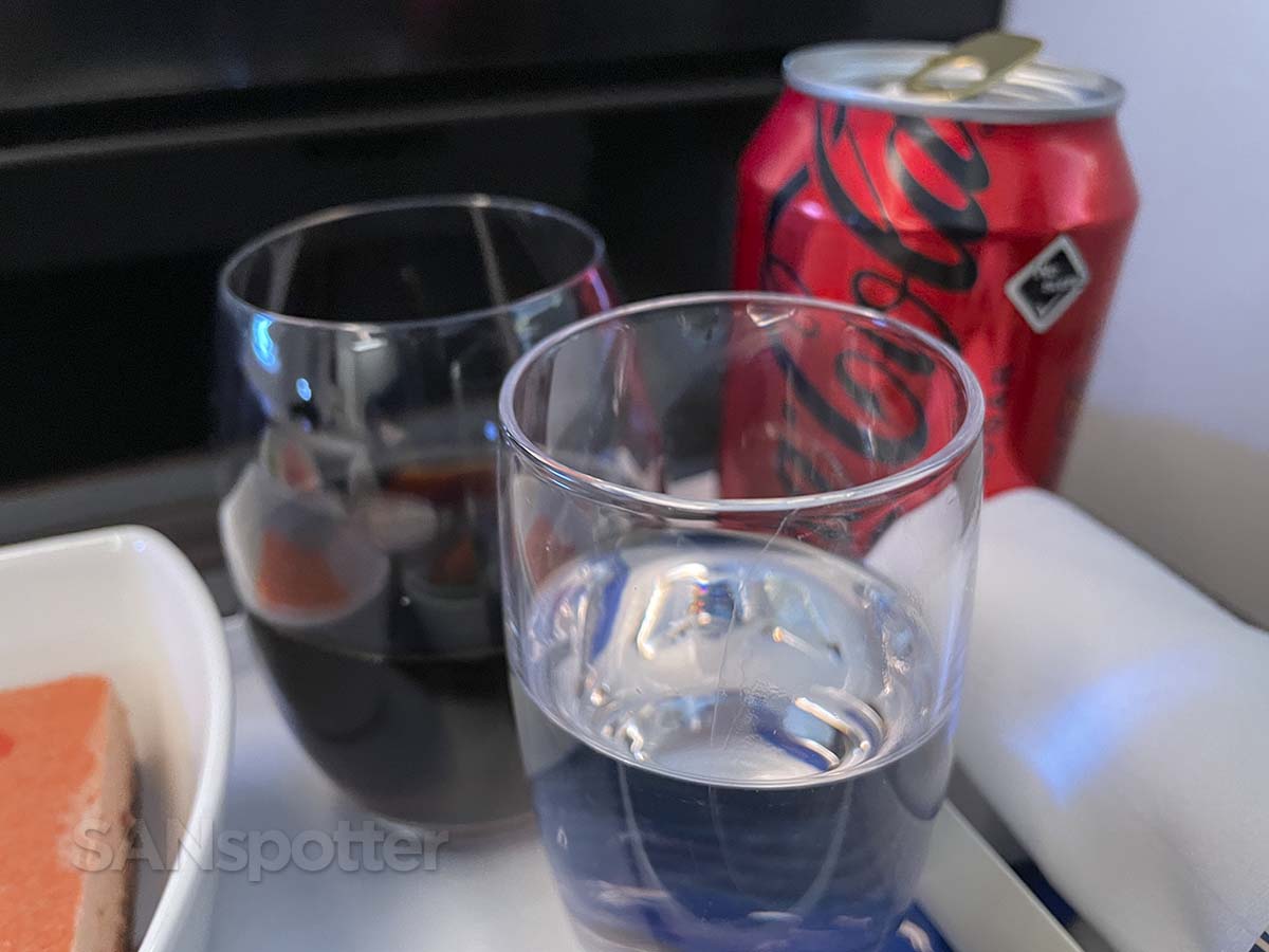 The meal service on this flight was admittedly a bit too ‘fast and furious’ for my liking, but with a flying time of only 1 hour and 49 minutes, the cabin crew had to rush it a bit. They did the best they could with the time they had.