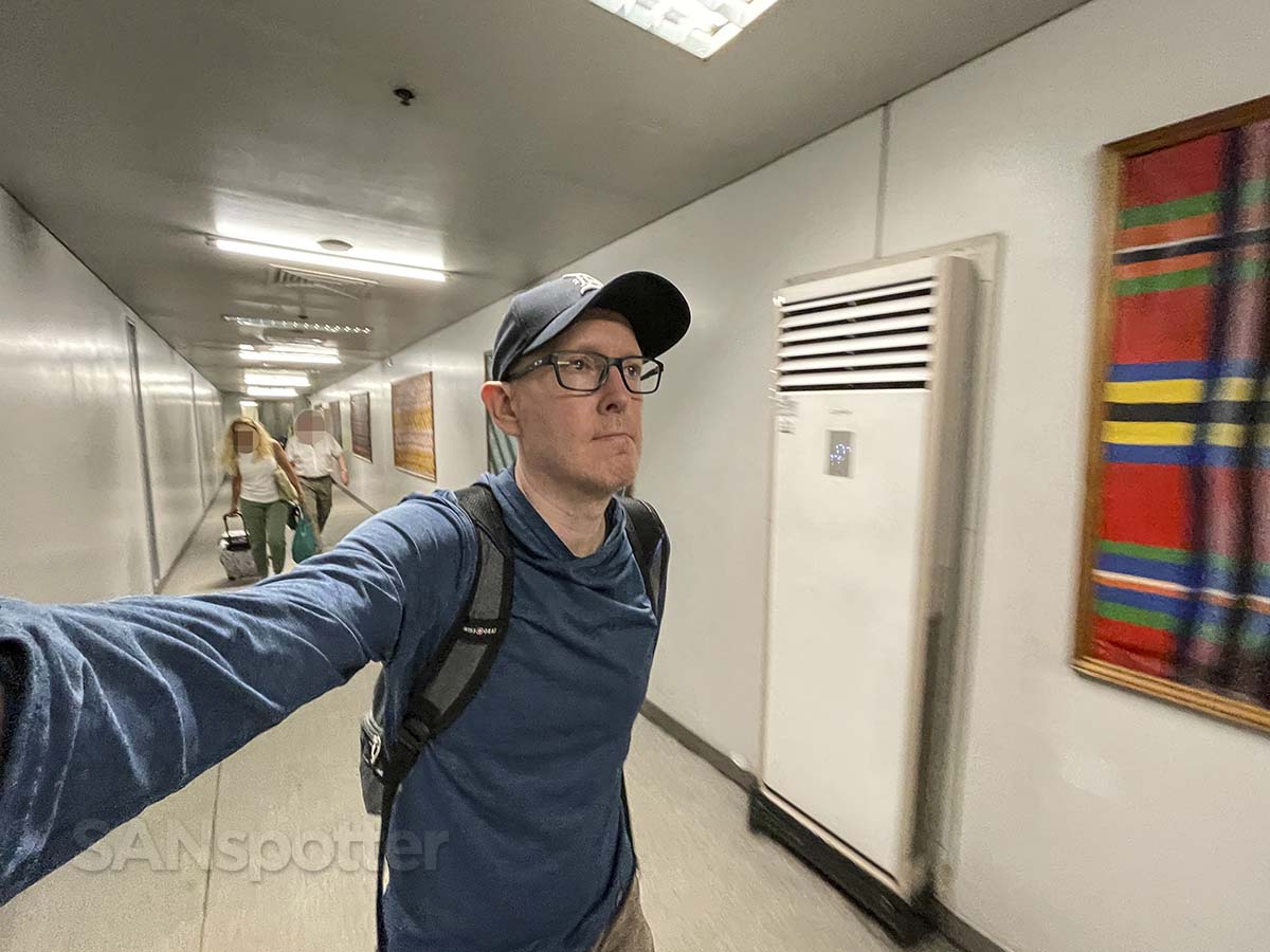Welcome to the Philippines! As a resident of Southern California who hasn’t seen rain in over 8 months, this pretty much seems like another planet to me.It’s either another planet…or Sydney. There’s no way of telling because of all this rain, but 1). The pilots seemed to have difficulty finding the airport earlier, and 2). That’s an awfully big kangaroo. It’s not all that far fetched to think that this could be Sydney.I don’t care where we are. All I know is that this was a fantastic flight and it was far (far) too short.“Go without me bro – I’m good right here.” Even my bag didn’t want this to end.What you can’t hear is my backpack yelling obscenities at me for yanking him off that seat. It was pretty embarrassing considering that he’s got the vocabulary of a p*ssed off gunnery sergeant…
