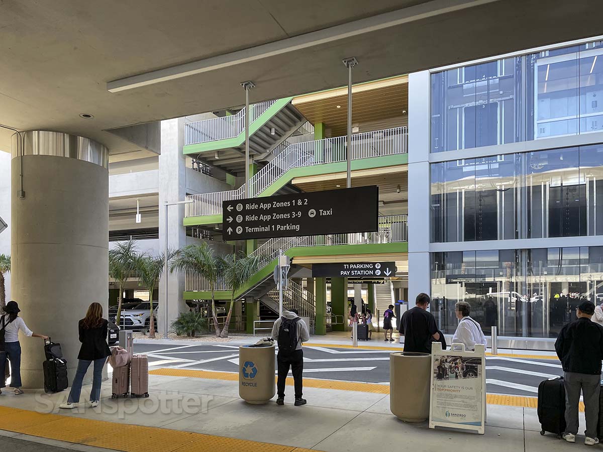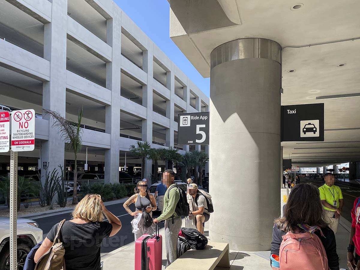 The rideshare pickup area is broken up into nine different zones. The Uber app will tell you which zone your driver will pick you up from.